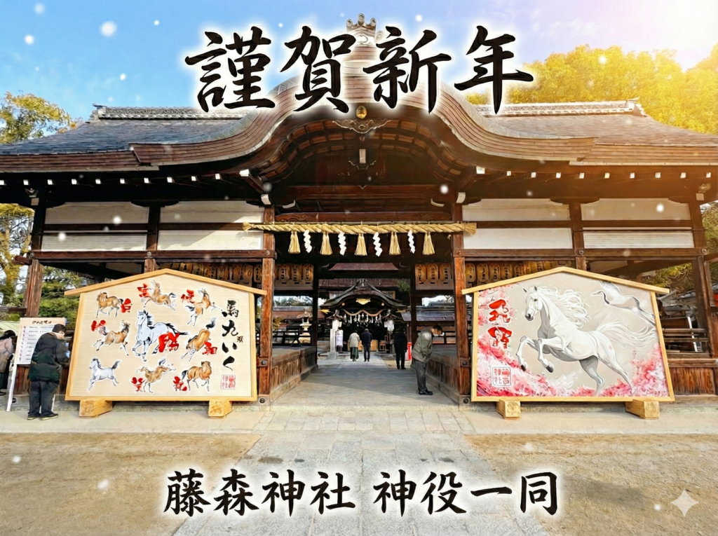 あけましておめでとうございます。今年は午年。藤森神社は勝運と馬の守護の神社で知られています。神役も忙しい年となりそうです。本年も例年以上に奉仕活動に力を入れていきます。よろしくお願いいたします。