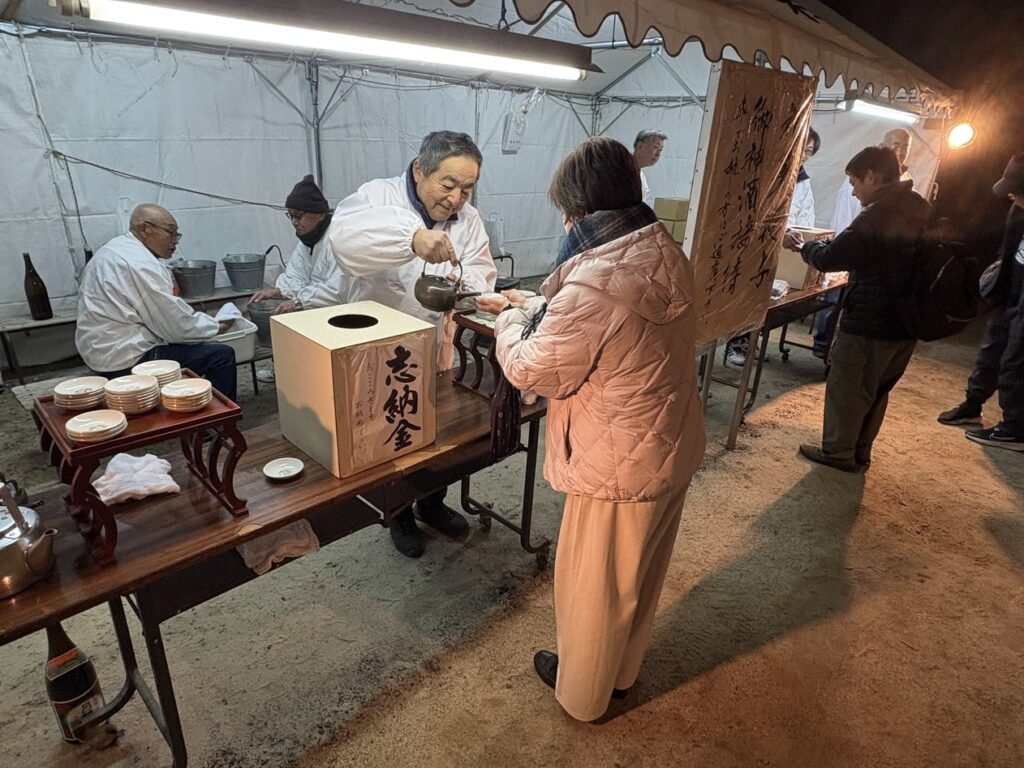 皆さん、新年いかがお過ごしでしょうか。神役は1年最初のご奉仕で、1日0時から2時過ぎまで御神酒の接待と祝箸の授与をしました。
