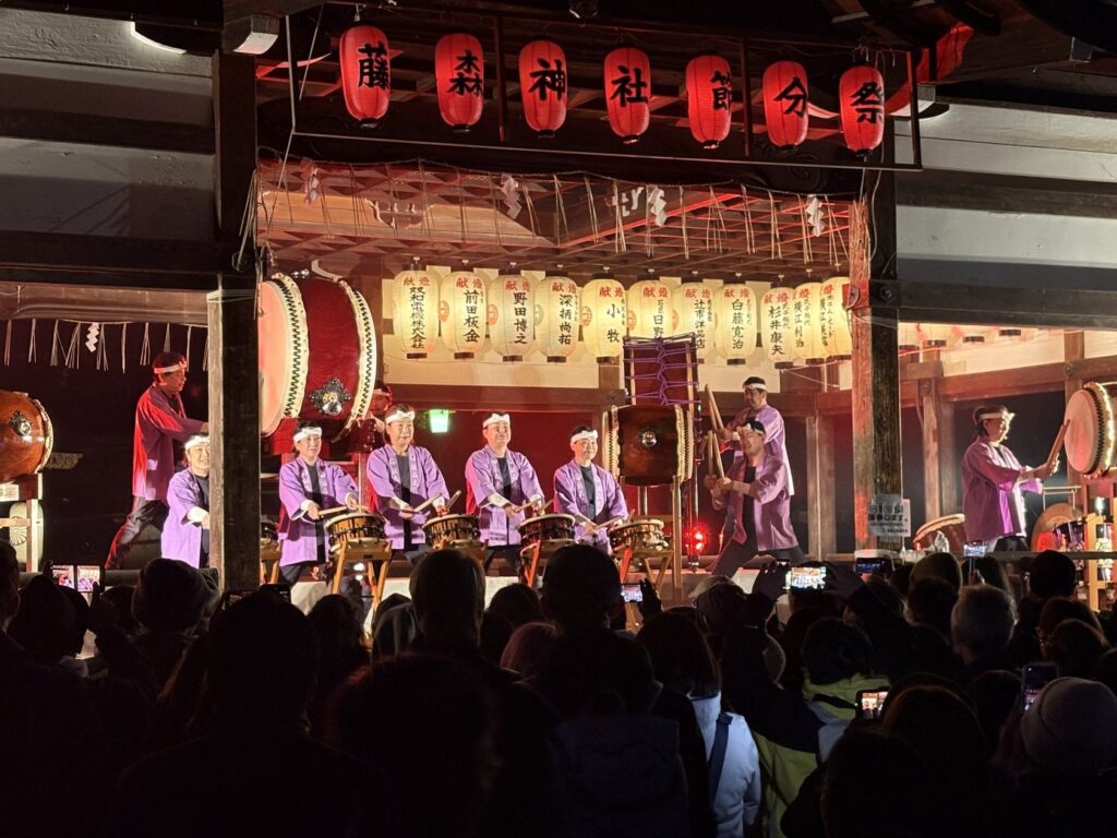 また、当日は雅楽や藤森太鼓の奉納など、様々な行事が行われました。いつも見事な演奏ありがとうございます。ゆっくり聞くことはできなかったのですが、甘酒接待所まで、音が響いてました。
